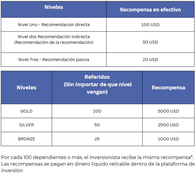 A continuación encontrarás el detalle completo de nuestro sistema de recompensas: